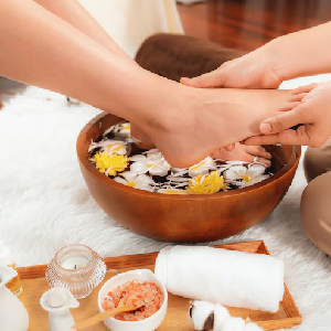 Relax and revive tired feet with expert care. Includes soak, scrub, nail care, and polish.